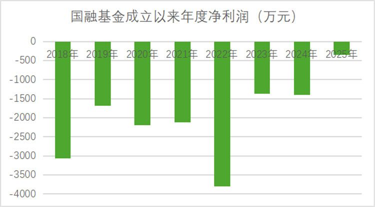 国融基金在2017年6月20日成立,同花顺数据显示,其成立后每年的净利润均为负值:2018年、2019年、2020年、2021年、2022年亏损较为严重,净利润分别为-3070.66万元、-1681.02万元、-2194.78万元、-2116万元(据行业统计与国融基金年报/股东披露)、-3809.45万元,2023年至2025年亏损有所收窄,净利润分别为-1366.21万元、-1400.00万元、-346.32万元。成立8年,共亏损-15984.4万元。